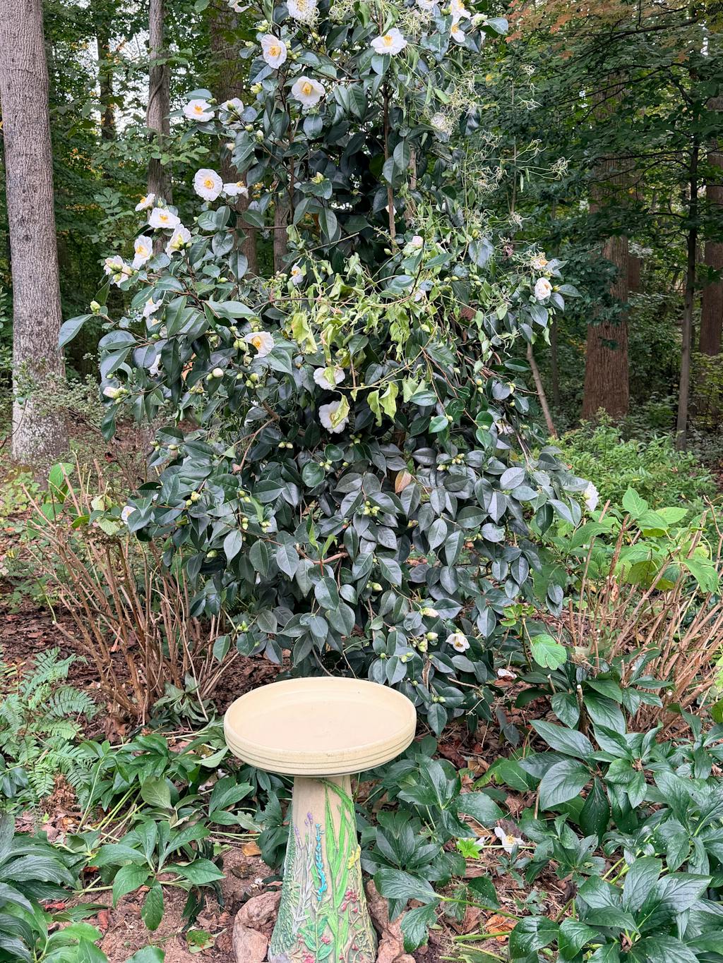 Place your birdbath a few yards from trees so that birds can perch on limbs and groom themselves.